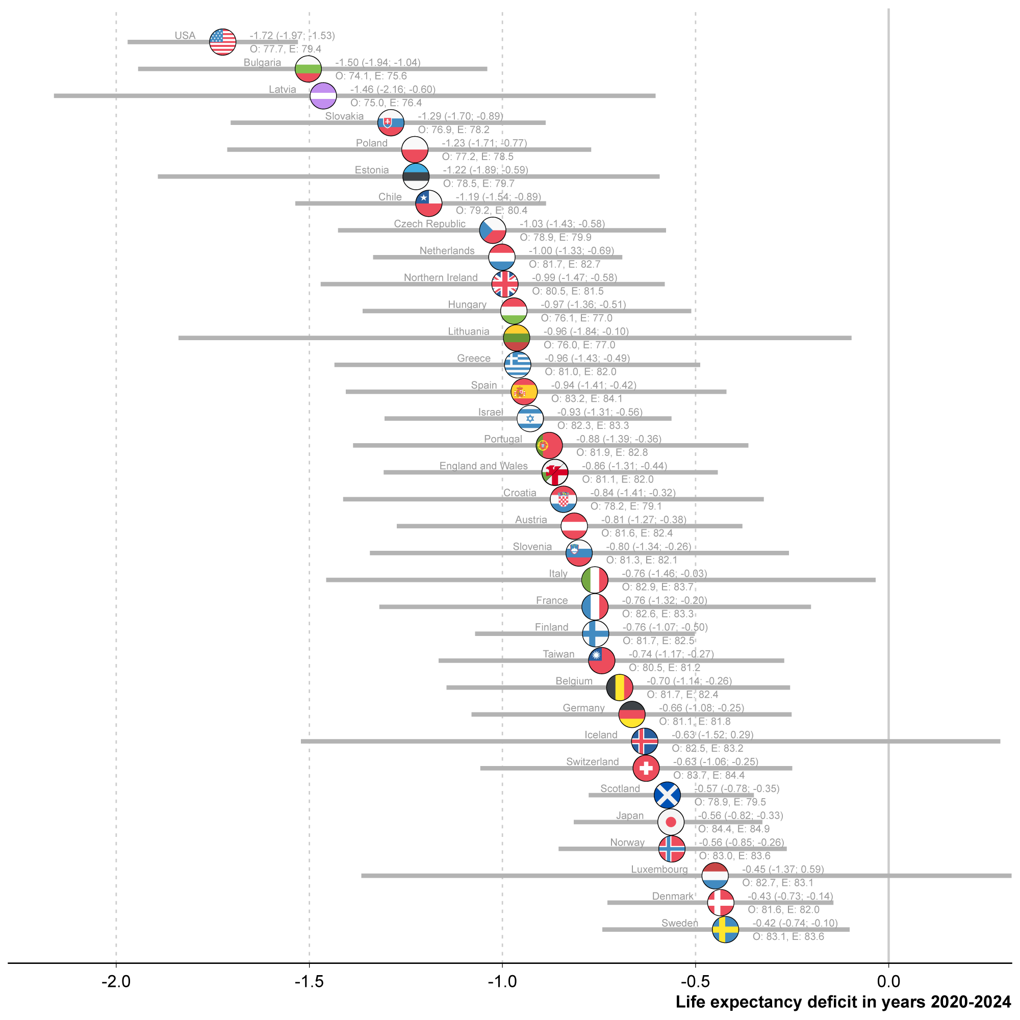 The findings suggest that recovery remains incomplete in most countries. In 2024, 31 out of 34 countries still had lower life expectancy than expected based on pre-pandemic trends.